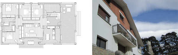 La fachada a la plaza Padre Aguirre con huecos horizontales y con el criterio de favorecer la continuidad con los ya existentes y consolidar el aspecto urbano de la plaza.